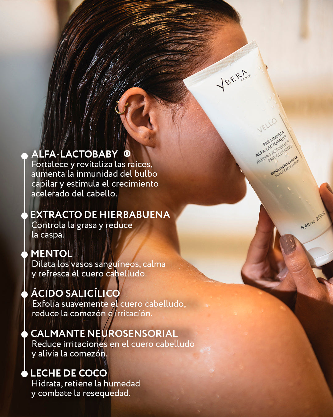 La línea Vello es una terapia de fertilización capilar bio-mimética para hombres y mujeres con atrofia capilar a base del calostro que estimula el crecimiento del cabello, combate la caída del cabello y restaura la vitalidad. Vello Home Care debe ser utilizado de 15 a 20 días antes del proceso de Fertilización Capilar en el Salón de Belleza. La bio-mimética viene de la palabra bio “vida’’ y mimesis “imitar’’, es la ciencia que estudia a la naturaleza como fuente de inspiración para resolver problemas humanos que la naturaleza ha resuelto a través de sistemas o procesos que la imitan o se inspiran en ella.